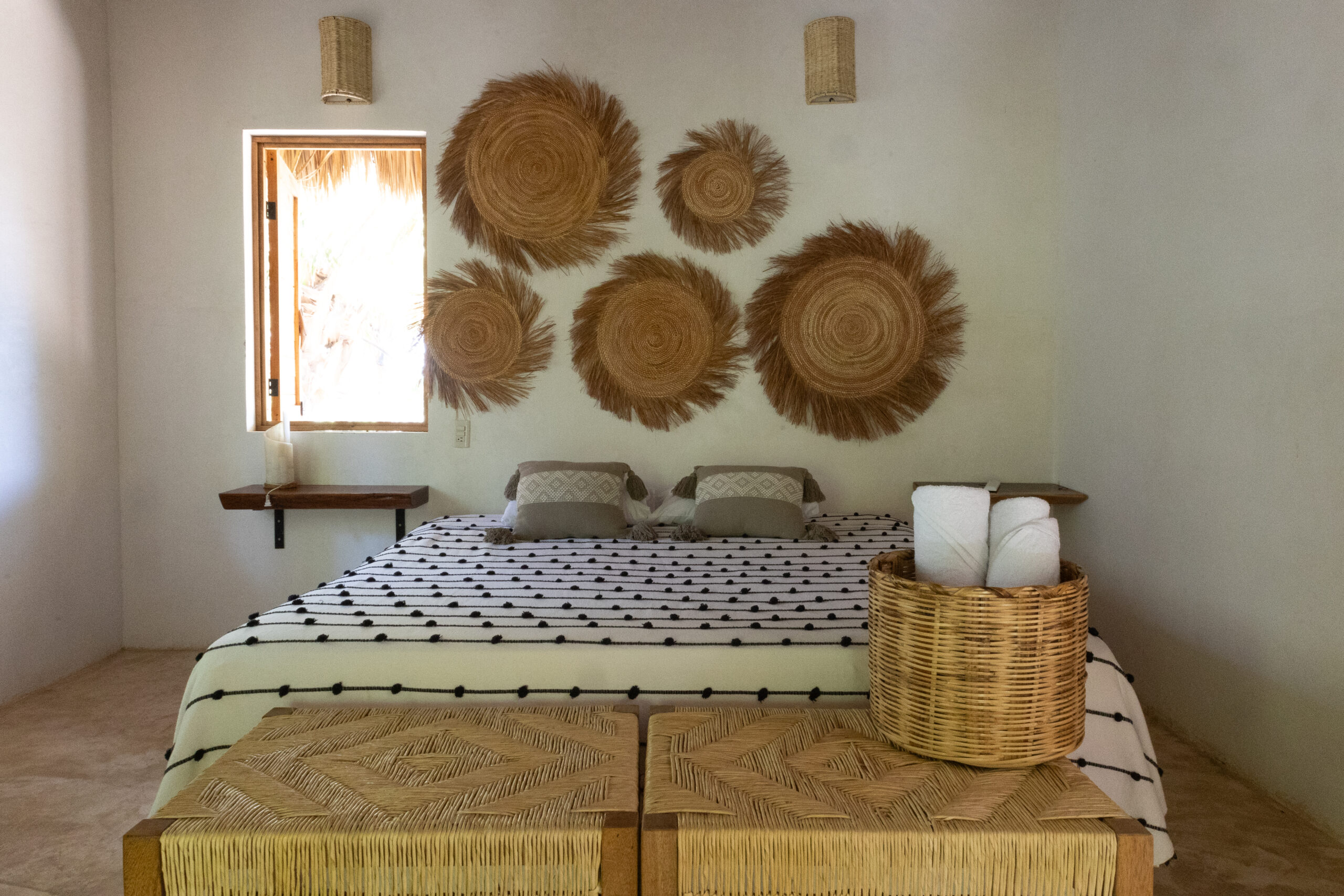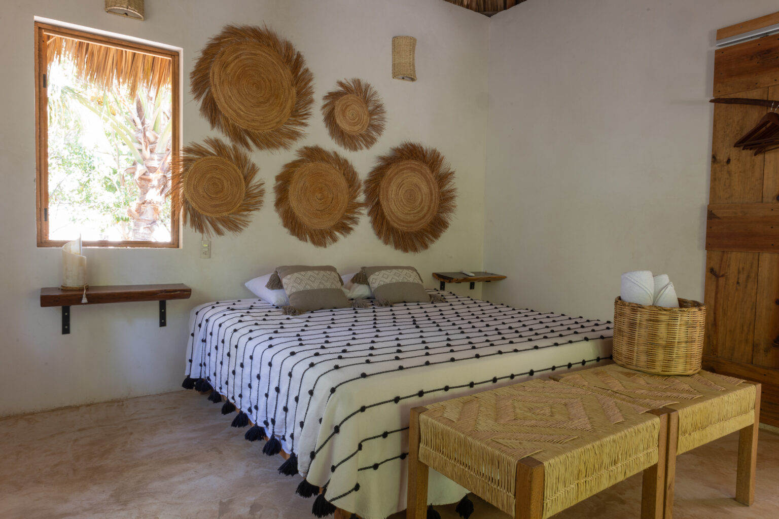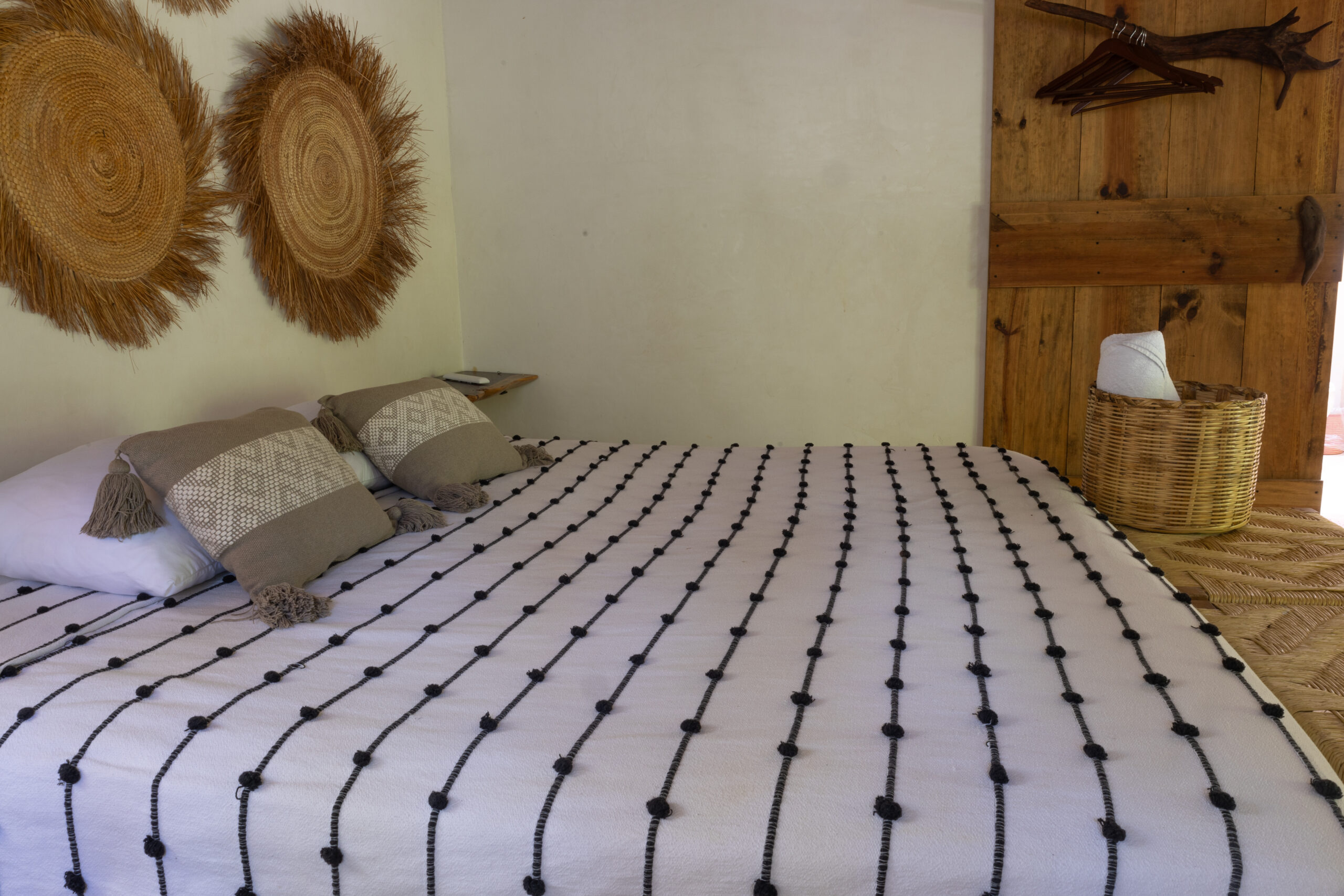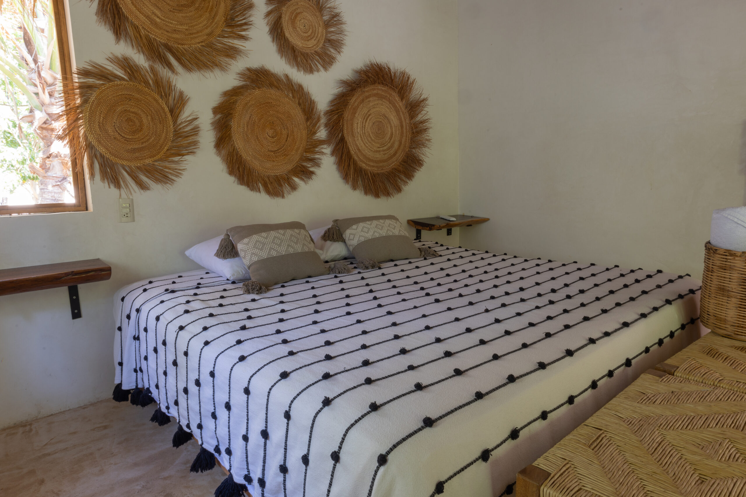 Esta habitación ofrece elegancia sencilla, en medio de un entorno tranquilo rodeado por naturaleza. Cuenta con una cama king size y junto a la decoración oaxaqueña, invitan a una perfecta escapada romántica