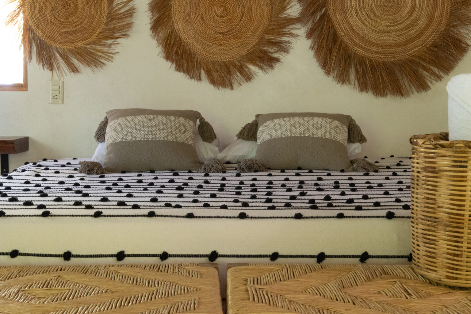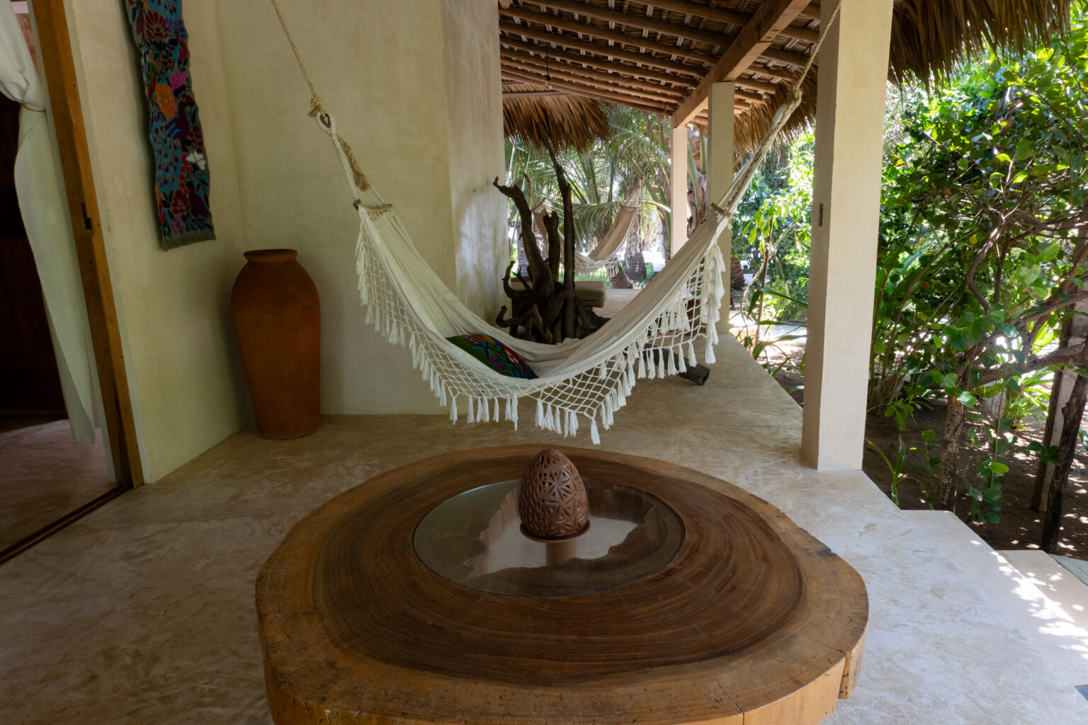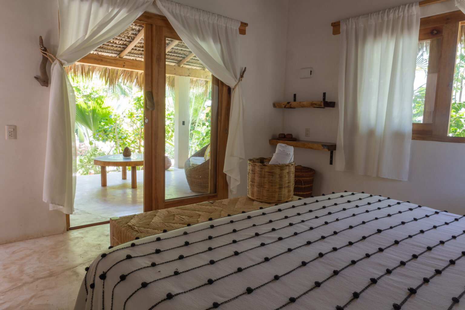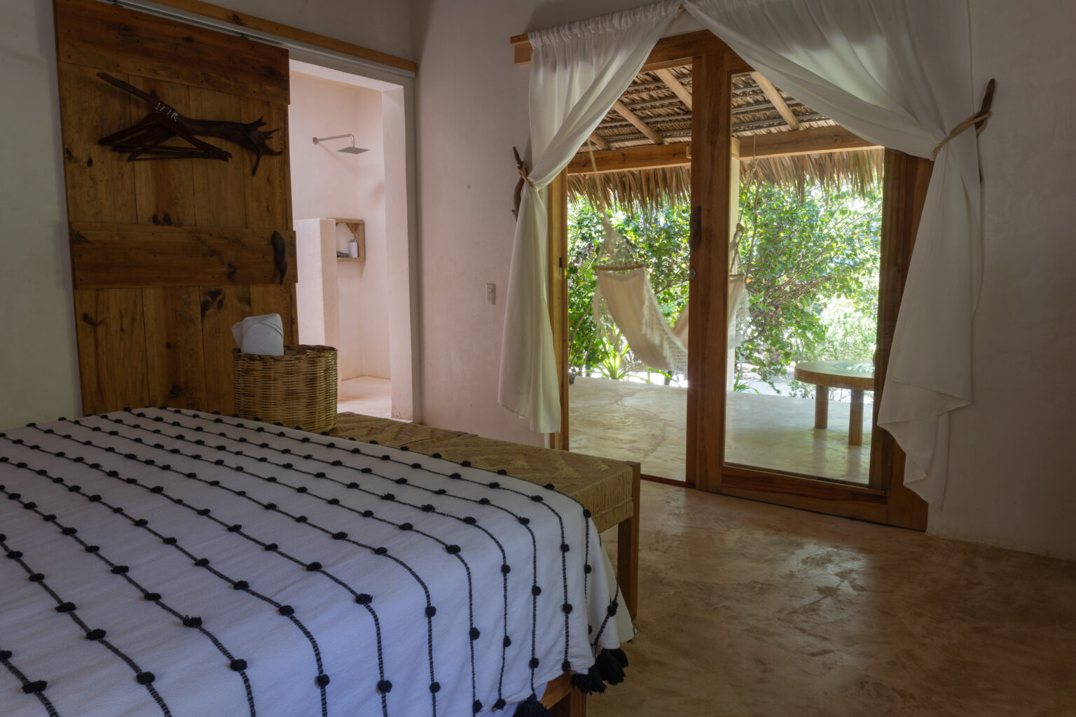 Esta habitación ofrece elegancia sencilla, en medio de un entorno tranquilo rodeado por naturaleza. Cuenta con una cama king size y junto a la decoración oaxaqueña, invitan a una perfecta escapada romántica